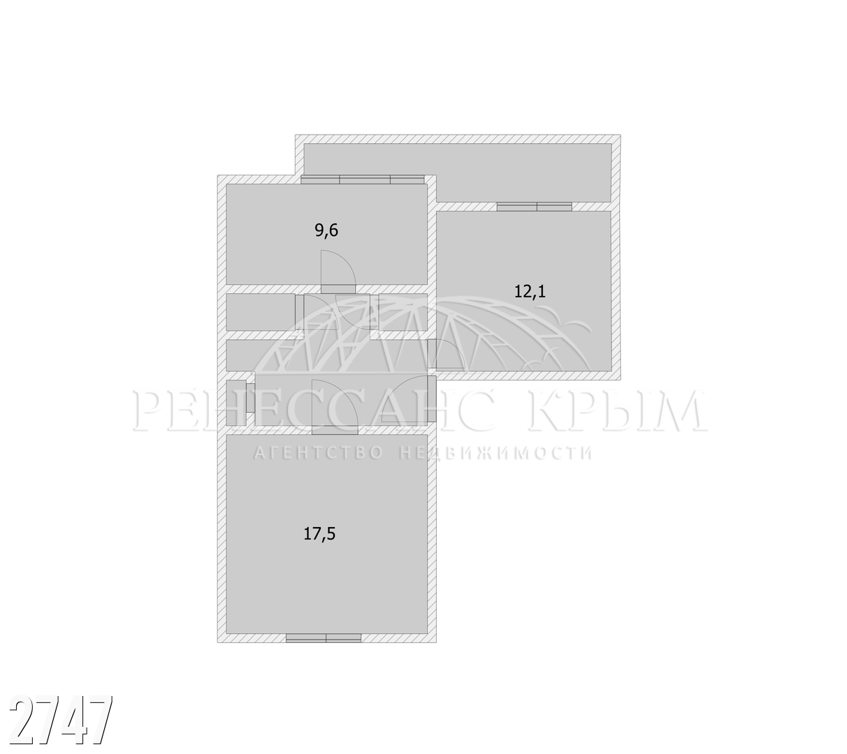 • Комнаты — 12,1 м² и 17,5 м²