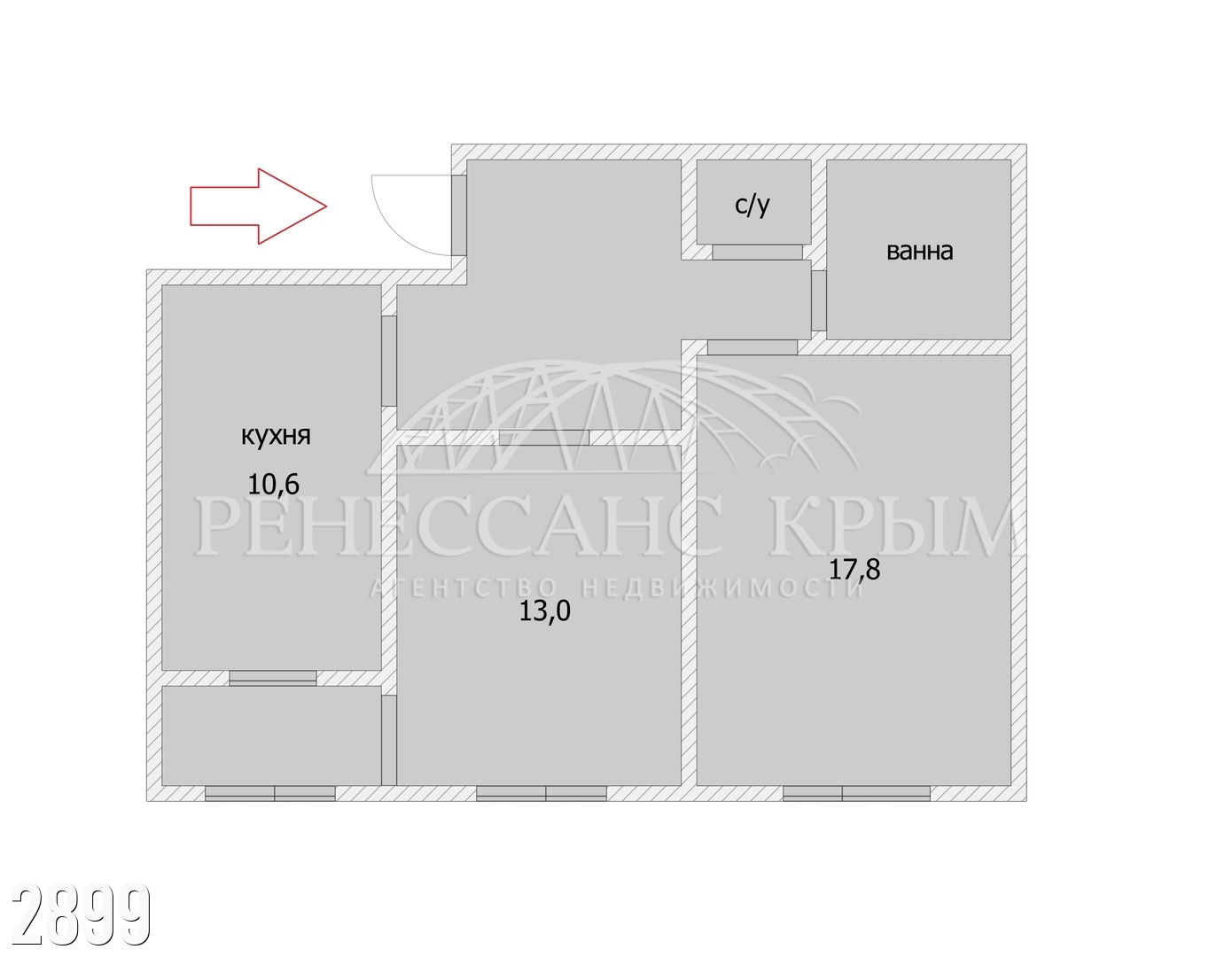 - Комнаты раздельные — 13 м² и 17,8 м²
